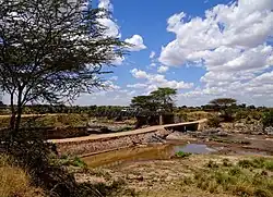 The Mara River is a river that begins flowing from Narok County in Kenya and ends in Mara Region in Tanzania. It lies across the migration path of ungulates in the Maasai Mara/Serengeti ecosystem.[1]