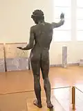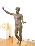 - ^ The unusual stance was noted by Gisela Richter, "The Hermes of Praxiteles" American Journal of Archaeology 35.3 (July - September 1931:277-290) p. 280, crediting W. Wrede, in Arch. Anz. 1926:401 with the observation. On this, see also Dafas, K. A., 2019. Greek Large-Scale Bronze Statuary: The Late Archaic and Classical Periods, Institute of Classical Studies, School of Advanced Study, University of London, Bulletin of the Institute of Classical Studies, Monograph, BICS Supplement 138 (London), pp. 84-96, pls 72-81.