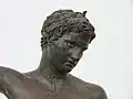 The sculpture is conserved in the National Archaeological Museum of Athens where it is dated to around 340–330 BC.[1] The Museum suggests that the subject is the winner of an athletic competition. With its soft musculature and exaggerated contrapposto, its style is associated with the school of Praxiteles. The upraised arm and the distribution of weight indicate that in his original context, this ephebe was leaning against a vertical support, such as a column.[2]