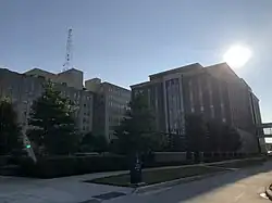 Marathon Petroleum traces its origin from a number of small oil companies in Ohio that banded together in 1887.[3] These formed The Ohio Oil Company established in Lima, Ohio. It became the largest oil producer in the state.[4] By 1889, the company was acquired by the Standard Oil Trust and six years later its headquarters was moved to Findlay.[5] In 1906, the company built its first oil pipeline, which connected its facilities in Martinsville, Illinois, and Preble, Indiana.[6]