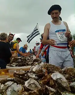 The Marathon du Médoc is a French marathon race, created in 1985, held every year in September through the vineyards of the Médoc in the Gironde. It is considered "the longest Marathon in the world" because the race is interspersed with several activities: musical breaks with 50 orchestras scattered around the course, 23 wine tasting stops,[1] oysters tasting at the 38th kilometer, and steak at the 39th kilometer.