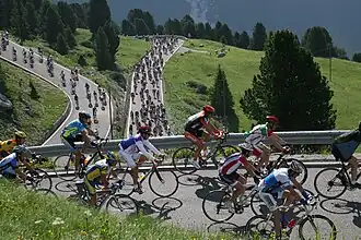 The Maratona dles Dolomites (Ladin for "Dolomites Marathon"; Italian: Maratona delle Dolomiti), is an annual single-day road bicycle race covering seven mountain passes in the Dolomites. Open to amateur cyclists, the Maratona—with 9,000 riders chosen from 30,000 applicants,[1] from over 70 nations—is one of the biggest Italian Granfondo bicycle races.[2][3] National Geographic described it as "one of the biggest, most passionate, and most chaotic bike races on Earth."[4]