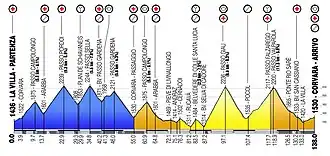 ‘Time’ was the main theme. 8,969 riders left La Villa in a 36-minute long train, the time it took the cyclists to enter the competition to the rhythm of live music and encouragement. There were large numbers and a huge demand for participation (32,600 people), with the usual formula: a fixed number of participants, car-free Dolomite passes, charity initiatives and eco-sustainability, with the use of electric cars and motorbikes to transport the jury and the race organisers. The "mür dl giat" was the great new feature.[7] All cyclists on the medium and long route, during the second passage through La Villa, were asked to face a final tough challenge: 200 metres (660 ft) after the turn for Corvara, then had to climb the "mür dl giat" (the cat's wall), as the inhabitants of La Villa are known as ‘cats’. This was a deviation with a 19% grade that crossed La Villa. At the top it re-joined the main route to the finish line in Corvara.