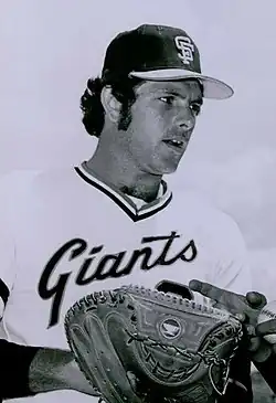 Hill platooned with Dave Rader behind the plate for two seasons with the Giants. He hit his first major league home run off the Atlanta Braves' Carl Morton on April 12, 1975.[4] Following the 1976 season, Rader was traded to the Cardinals, leaving the starting job solely in Hill's hands. He responded with a career year in 1977, batting .250 with nine home runs & 50 RBIs, all career highs.