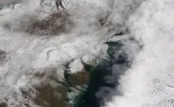 ![]() A Suomi NPP satellite image of the nor'easter at peak intensity off the Northeast U.S. on March 22, 2018 | |