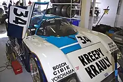 The March 84G was a mid-engined Group C and IMSA racing sports prototype, designed and developed by March Engineering in late 1983 and used in sports car racing until 1989. It was powered by a number of different engines, including a Chevrolet small-block,[1] a Buick V6, a Porsche flat-six, and even a Mazda 13B Wankel rotary engine. Power output was around 620 hp (460 kW). It only managed to score 5 wins, and clinch a total of 10 podium, over the course of 7 years and 119 race entries.[2][3][4][5][6][7][8][9][10][11][12]