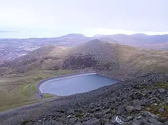 Marchlyn Mawr reservoir is a high level lake in Snowdonia behind Elidir Fawr mountain. It is used as the high level water source for Dinorwig power station, a closed-loop pumped storage hydroelectric generating facility.