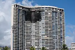 The Marco Polo condo fire was a high-rise fire that occurred at 2:17 p.m. on July 14, 2017, in the 36-story Marco Polo condominium building at 2333 Kapiolani Boulevard in the McCully-Mōʻiliʻili neighborhood of Honolulu, Hawaii.[5] 4 people were killed, and 13 others (including 1 firefighter) were injured.[3][6] Over 200 units were damaged or destroyed[a] giving the destruction of the building at more than $100 million.[4] Additionally, concern about the abatement of asbestos, which was built into the Marco Polo structure, is under investigation by the state of Hawai'i's Department of Health and Department of Labor's workplace safety division.[7][8][9][10][11]