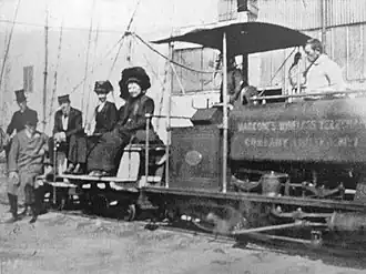The track and the steam locomotive were designed and built from 1905 to 1907 by Dick, Kerr & Co. in Scotland. Initially it was used to transport construction material and electrical equipment. On 17 October 1907, the first passengers were transported to the Wireless Station. Later it became useful for transporting peat to the power station and for employees and visitors to various points.[2]