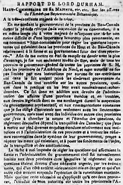 Following the rebellion in Lower Canada, and the similar rebellion in Upper Canada in 1837, the British government decided to merge the two provinces into a single province, as recommended by Lord Durham in the Durham Report. The Union Act, 1840, passed by the British Parliament, abolished the two provinces and their separate parliaments. It created the Province of Canada, with a single Parliament for the entire province, composed of an elected Legislative Assembly and an appointed Legislative Council. The Governor General initially retained a strong position in the government.[8][9][10]