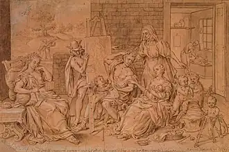 The painting style of Gheeraerts was initially influenced by Bernard van Orley. After 1565 he followed the Italianate style of painting of prominent Antwerp history painter Maerten de Vos. His painting style is further close to that of the little-known Vincent Sellaer.[11]