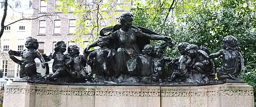The Margaret MacDonald Memorial is a sculpture by Richard Reginald Goulden, beside the path at the north edge of the public park at Lincoln's Inn Fields, London. It became a grade II listed structure in 1974.