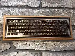 - ^ Rhonda Lowe, Plaque to Margaret Manson Graham, Mapping Memorials to Women in Scotland, Women's History Scotland.