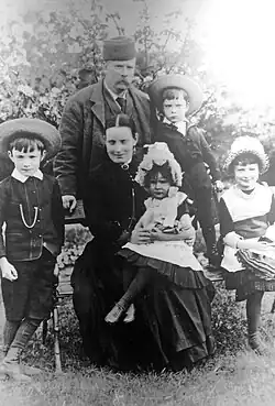 Margaret and James had four children together.[3][5] The first three children are Margaret Mary born 4 August 1878,[5][11] Patrick born 10 November 1879[5][12] and William born 15 November 1881.[5][13] All three children were born while the family lived in 27 Great Brunswick St.[3] Their youngest child, Mary Brigid, was born 29 September 1888,[14] by which time the family had moved to Newbridge Avenue, Sandymount.[3] Margaret's aunt, Margaret Brady, an Irish speaker, was a frequent visitor to the family home and encouraged the children's interest in the Irish language and culture.[5] Her husband James Pearse died in 1900.[15] Margaret Pearse did not permit her children to play with other children, however, she supported her children in all their aspirations.[6] She had a very strong relationship and consequent effect on her eldest son, Patrick. She took over the responsibility of Housekeeper at the school at St. Enda's.[16]