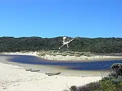 There is a weir across the river just above the town. The mouth of the river is a small estuary, closed to the ocean by a sandbar that opens only seasonally.
