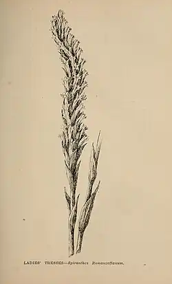 Ladies' Tresses or Spiranthes Romanzoffianum (now Spiranthes romanzoffiana), from a drawing by Margaret Warriner Buck for The Wild Flowers of California