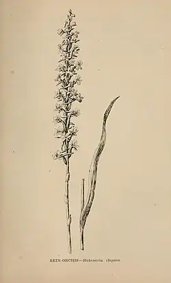 Rein-orchis (Habenaria elegans), from a drawing by Margaret Warriner Buck for The Wild Flowers of California