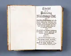 1. ^ Original Swedish text: "Försök til en pålitelig matrednings-bok, eller Upriktig beskrifning på allehanda matlagning, med hwad thertil hörer, såsom then nu för tiden är brukelig uti the förnämste hof-kök, utan then förr wanlige tilsatts af en myckenhet krydder. Jemte en upsats på rätters indelning til måltider, theras upsättande på borden, och om betjänandet therwid. Af M.E.B. Stockholm, tryckt uti kongl. tryckeriet, 1751"