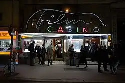 As a program and art house cinema, the Filmcasino mainly shows films from European productions, but also from Asia and Latin America as well as US independent film. There is a close cooperation with the Polyfilm film distribution company. In normal operation, there are two to five performances a day. In addition, the Filmcasino shows premieres of Austrian and European films, often followed by discussion rounds and lectures, thematic programs and special screenings (architecture film series, Cine Morning with free childcare, cinema & cake, Filmwunder children's film series, etc.) and hosts film festivals such as the Latin Film Lounge, Japannual and the Slash Film Festival.