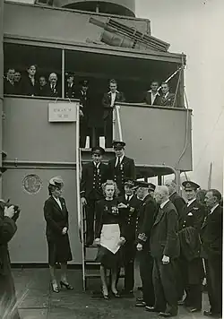 Johnsen received several decorations for her war effort.[14] She is the only female recipient of the Norwegian military award St. Olav's Medal with Oak Branch.[15][16] For having served more than 18 months on merchant vessels in dangerous areas, Johnsen was awarded the War Medal. Her effort on MV Talabot was honoured by the British with the British Empire Medal "for without fear having served coffee and other refreshments to sailors on the bridge and by the guns during a severe air raid on the ship while it was heading for Malta."[7]