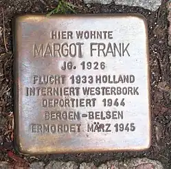 - ^ "Margot Frank". annefrank.org. Archived from the original on 2 January 2018. Retrieved 5 March 2018.