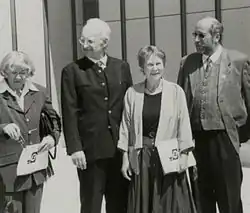 After an award: (L to R) Margret Hölle, Bavarian minister President Edmund Stoiber, Malerin Ruthild Langhammer and Bernhard M. Baron
