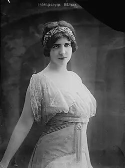 Bériza sang Monna Vanna for her debut with the Chicago Grand Opera Company in 1915.[7] She performed in several operas at Ravinia Park, Illinois (with the Chicago Symphony Orchestra), in July–August 1916, including singing Cio-Cio-San in Puccini's Madama Butterfly, Marguerite, Santuzza, Tosca, and the title role in Georges Bizet's Carmen.[8] She returned to Ravinia in the summer of 1917 to sing the French national anthem, Leonora in Verdi's Il trovatore, and, with Orville Harrold, Santuzza and the title role in Massenet's Manon.[9][10] She performed at Ravinia again in 1928.[11] In 1917 she toured the United States with the Giuseppe Creatore Grand Opera Company[12] and appeared at the Odeon Theatre in St. Louis, Missouri, in the world premiere of Homer Moore's Louis XIV.[4]