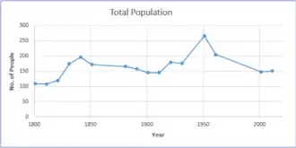 According to the 2011 census there were 76 males and 75 females living in the parish.[2]