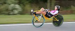 Parker rides a front-wheel drive Cruzbike recumbent bicycle[4] and holds the: