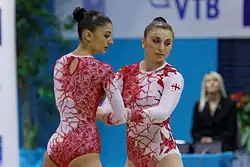 Mariam Gigolashvili and Nino Diasamidze at the 2014 Acrobatic Gymnastics World Championships
