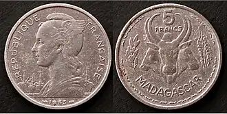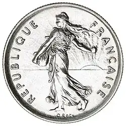 | Obverse: Marianne wearing the Phrygian cap of liberty. | Reverse: Face value and French motto: "Liberté, égalité, fraternité". |
