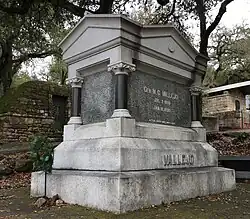 By the time of his death on January 18, 1890, Vallejo led a modest lifestyle on the last vestige of his once vast landholdings at his Lachryma Montis home in Sonoma, California.[19][20] A few days after the first anniversary of her husband's death, Francisca Benicia Carrillo de Vallejo died on January 30, 1891. He is interred at the Mountain Cemetery in Sonoma.[21]