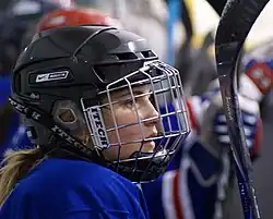 Poulin was named team captain for the 2015 IIHF Women's World Championship. She registered six points for Team Canada in the course of the tournament, including a goal in the final game, a 7–5 loss to Team USA.[57] Poulin continued to serve as captain at the women's tournament at the 2018 Winter Olympics in Pyeongchang, where Canada won silver.[58]