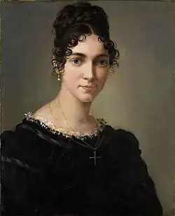 In 1813, she enrolled in the Academy of Fine Arts Munich, making her the first woman admitted to an art academy in Germany.[4][5] She thus paved the way for many other women to train professionally as artists at the Munich Academy.[4][5] She studied there under the miniature painter Joseph Einsle.[3] Her early portraits were similar in style to those of Angelica Kauffman and had a more relaxed naturalism than was usual in German portraiture of the time.[1]