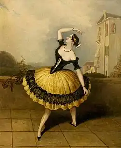 Cyril W. Beaumont had a painting after J. H. Lynch showing Guy-Stéphan dancing 'Las Boleras de Cadiz' from the ballet divertissement L'Aurore at Her Majesty's Theatre in London in 1843 (now in the collection of the Victoria & Albert Museum),[4] and an engraving of Guy-Stéphan dancing in the same ballet appears in La Ilustración of 23 March 1850.[5] There is also an 1850 daguerreotype showing a dancer with castanets who has been identified as Marie Guy-Stéphan.[6]