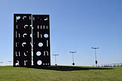 - 2019« tenemos el poder de elegir » monumental, permanent installation Bienalsur - Diana Wechsler & Anibal Jozami, Tucuman, Argentina - 5m height - Curten