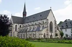 The abbey was established by Heisterbach Abbey, which was created by Himmerod Abbey, which in turn was founded from Clairvaux Abbey in 1134, in a direct succession.[1][2] In 1212, it was first founded in Neunkhausen, made possible by a donation from Eberhard of Arenberg and his wife Adelheid von Molsberg.[2] The site was abandoned because of the climate and soil, and the monastery was transferred to the present location in 1222.[2] According to legend, the abbot had a dream of a hawthorn bush that flowered in winter, which led him to choose the new site.[2] The first church there was consecrated on 27 December 1227 under Conrad, the third abbot.[2] The monastery at the time belonged to the Diocese of Cologne.[2]