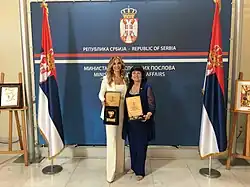 ![]() Marina Arsenijevic & Rosie Stephenson-Goodknight (l-r), Knight of the St. Sava Order of Diplomatic Pacifism ceremony (2018) | |