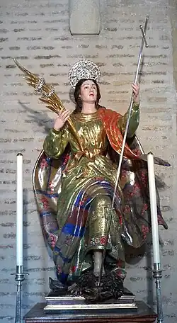 Marina would have suffered martyrdom in the vicinity of the city of Ourense, in the locality of Aguas Santas, where her remains are preserved in a church dedicated to her. The great diffusion of the cult is attested by the innumerable churches and sanctuaries dedicated to her in the dioceses of Galicia, Astorga, and in others more distant, such as Cordoba and Seville.[4]