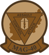 Marine Aircraft Group 40 is a composite United States Marine Corps aviation unit that is based in Marine Corps Air Station Cherry Point and was deployed to Afghanistan in 2009. They served as the aviation combat element for 2nd Marine Expeditionary Brigade which was supporting Operation Enduring Freedom from spring 2009 through 4 April 2010 when they were relieved by the 3rd Marine Aircraft Wing (Fwd).[1][2] The group is currently composed of two CH-53 squadrons, one light attack helicopter squadron, one AV-8B Harrier II squadron, one MV-22 Osprey squadron, one KC-130 tactical aerial refueling squadron, one unmanned aerial vehicle squadron and an aviation logistics squadron.