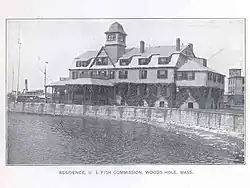 The Marine Biological Laboratory grew from the vision of several Bostonians and Spencer Fullerton Baird, the United States' first Fish Commissioner (a government official concerned with the use of fisheries). Baird had set up a United States Fish Commission research station in Woods Hole in 1882, and had ambitions to expand it into a major laboratory. He invited Alpheus Hyatt to move his marine biology laboratory and school which he had founded at the Norwood-Hyatt House in Annisquam, Massachusetts, to Woods Hole. Inspired by Harvard biologist Louis Agassiz's short-lived experimental summer school, the Anderson School of Natural History on Penikese Island, off the coast of Woods Hole, Hyatt accepted the offer.[4] With $10,000 raised by the Woman's Education Association of Boston and the Boston Society of Natural History, land was purchased, a building was erected, and the MBL was incorporated with Hyatt as the first president of the board of trustees. The Fish Commission supplied crucial support, including marine organisms and running sea water.