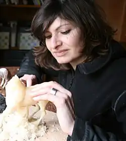 In 1998 the book service of Algeria called upon her to illustrate a new edition of Les chevaux du Sahara.[10] She contributed to various books for different publishers and to equestrian magazines such as " Cheval pratique ". A book lover, she enjoys working with a team, publishers and authors, sharing knowledge. In 2002 she hosted a presentation of her works about horses, followed by a workshop at the Arab World Institute in Paris ; her book Les chevaux du vent, oiseaux sans ailes, was published at the same time.[5][11]