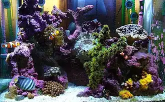 Marine aquarists typically divide saltwater aquariums into those housing fish only, those housing fish with live rock, and those primarily designed to house corals and other invertebrates (also known as reef aquariums). Many fish hobbyists also divide the types of saltwater tanks based on the water temperatures at which they are kept.[5]