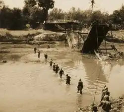 The Mariniersbrigade (English: Marine Brigade) was a marine unit set up by the Dutch government-in-exile during World War II, which existed between 1943 and 1949. It was formed as part of the Dutch contribution to the Allied war effort against Japan and more particularly for the liberation of the Dutch East Indies. The driving force behind its creation was marine colonel M. R. de Bruyne. The Mariniersbrigade became an independently operating unit with a strength of approximately 5,000 men. Capable of amphibious landings, the unit had a core of three infantry battalions, and was further equipped with landing craft, artillery and tanks.