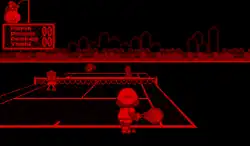 Mario's Tennis is a sports game in which the player controls one of seven different Mario characters and engages in tennis matches.[2] The action on the court is viewed from directly behind the player character from a third person perspective. The Virtual Boy's stereoscopic 3D graphics allow the player to perceive depth within the tennis court, allowing for better perception in the distance between a tennis ball and the respective character.[1] Unlike later entries in the Mario Tennis series, which added gameplay elements not present in traditional tennis, such as "power up items", special "power shots", or external obstacles interfering with the game, Mario's Tennis simply focuses on tennis fundamentals.[1][3]