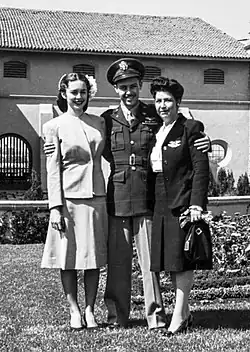Between 1944 and 1945, he was assigned to different U.S. Air Force Bases: Baer Field, Indiana; Grenada, Mississippi; Bergstrom in Austin, Texas; and then to Sedalia, Missouri.[2] During his service in Sedalia, while he was instructor of instructors, he met Martha Joy Young[2] and got married on January 29, 1945, in Glendale, Arizona. In late 1945, he retired from the U.S. Air Force,[2] although years later he became president of the Air Force Reserve Officer Association in Mexico City and an active member of the Air Force Association.[2]