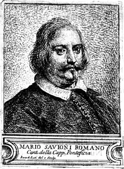 Mario Savioni (born 1608 in Rome, died 22 April 1685) was an Italian composer and a male alto of the Baroque era.