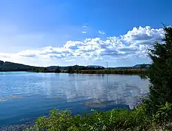 Nickajack Cave in Marion County, located 0.6 miles south of Shellmound Station on the west side of the Tennessee River, is one of the most historical caves in Tennessee.[17] It is currently part of a park run by the city of New Hope. A paved hiking trail leads to an observation deck at the entrance to the cave where visitors can watch the bats leave the cave at dusk.[18] The cave was used by tourists and as a show cave, but in 1968 the cave was flooded when Tennessee Valley Authority constructed Nickajack Dam 6 miles (9.7 km) downstream to replace the aging Hales Bar Dam.