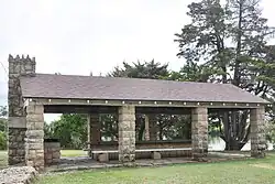 The Kansas State Fish and Game Commission architected the dam, and Marion County Engineer James Meisner architected the park. His plan included designs and placements of stone structures, roads, and landscaping, stressing "permanency and timeless, simple designs". Reportedly, Meisner "believed the entire park could be built from materials close at hand, native rock with which roads could be surfaced, picturesque bridges constructed, and the whole park improved with no cost except labor". The two original water sources were runoff, and a small spring at the lake head. The county petitioned a public vote on the project to employ 300 men and 150 teams with New Deal funding of US$70,000 (equivalent to about $1,586,000 in 2024), which was approved 5,261 to 2,061.[1]
