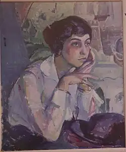 A member of Alfred Stieglitz’s artistic circle in New York City, Beckett was known primarily as a portrait painter.[9] Her Portrait of Mrs. Charles H. Beckett and Portrait of Mrs. Eduard J. Steichen were exhibited in the 1913 Armory Show.[10] In 1915, Beckett and Rhodes had a joint exhibition at Stieglitz’s 291 Gallery.[11] Prior to that, the only works of a female non-photographer that Stieglitz exhibited were that of Pamela Colman Smith in 1907.[12] Marion Beckett and her friends Katharine Rhoades and Agnes Ernst Meyer were known as the "Three Graces" of 291,[11][13] an accolade bestowed by Charles Lang Freer.[14] Agnes Ernst Meyer described Marion as one of "the most beautiful young women that ever walked this earth". She was also described as shy and reserved.[11]